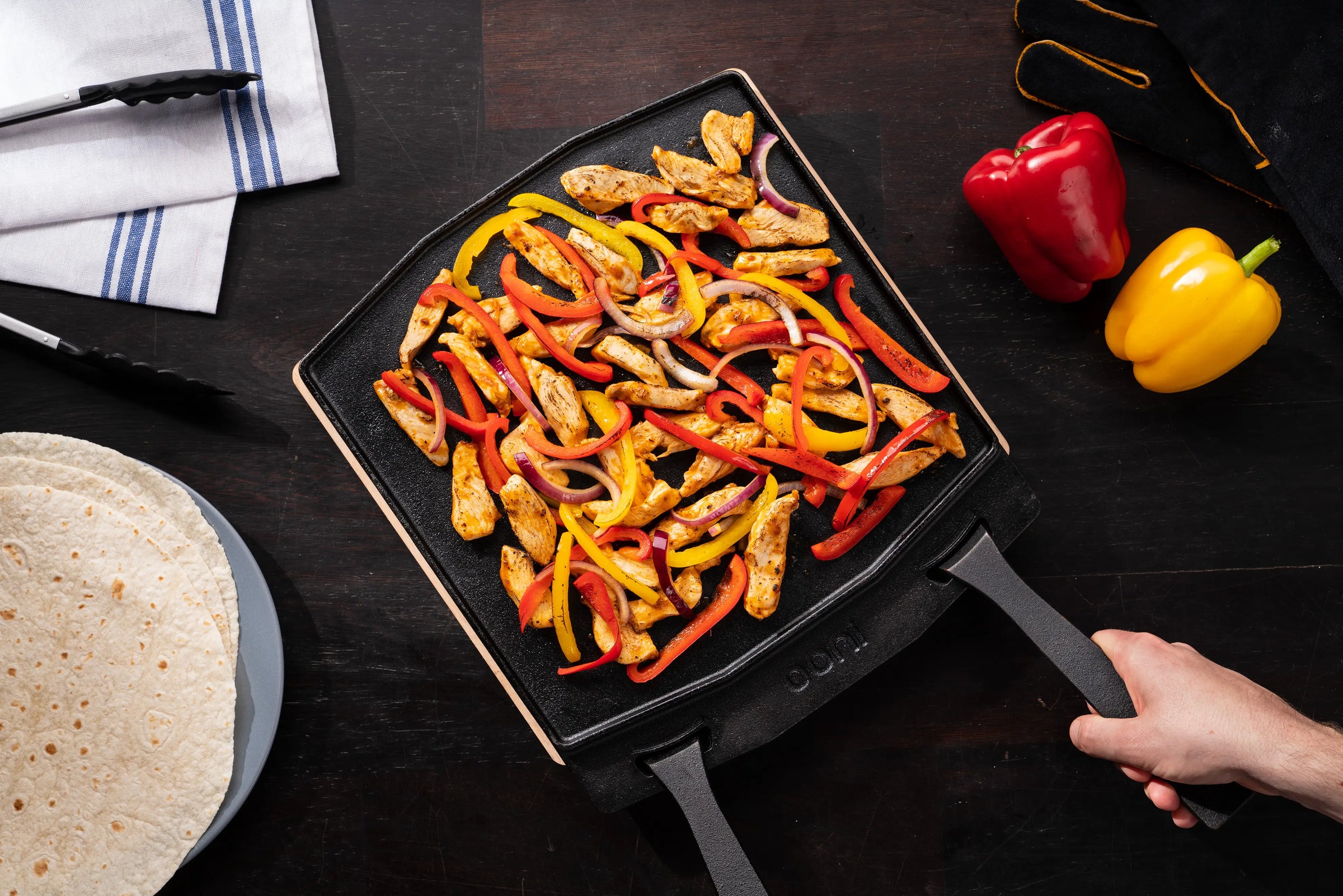 Ob draußen auf dem Grill oder direkt im Ooni Ofen: Die doppelseitige Grillpfanne von Ooni bietet dir das volle Potenzial, um verschiedenste Gerichte zuzubereiten. Mit einer glatten Seite zum Braten und einer geriffelten Seite für ein tolles Grillmuster ist diese Pfanne ideal für Fleisch, Gemüse, Pfannkuchen und vieles mehr. Entwickelt für alle, die beim Kochen gerne flexibel bleiben und neues ausprobieren möchten.