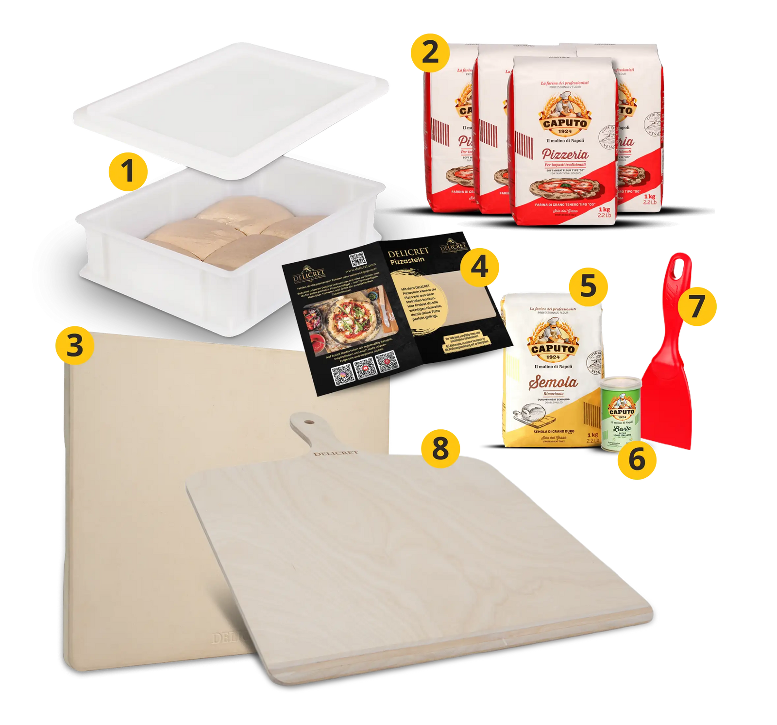 DELICRET Pizza Bundle inkl. Pizzastein, Zubehör und beste Zutaten von Caputo