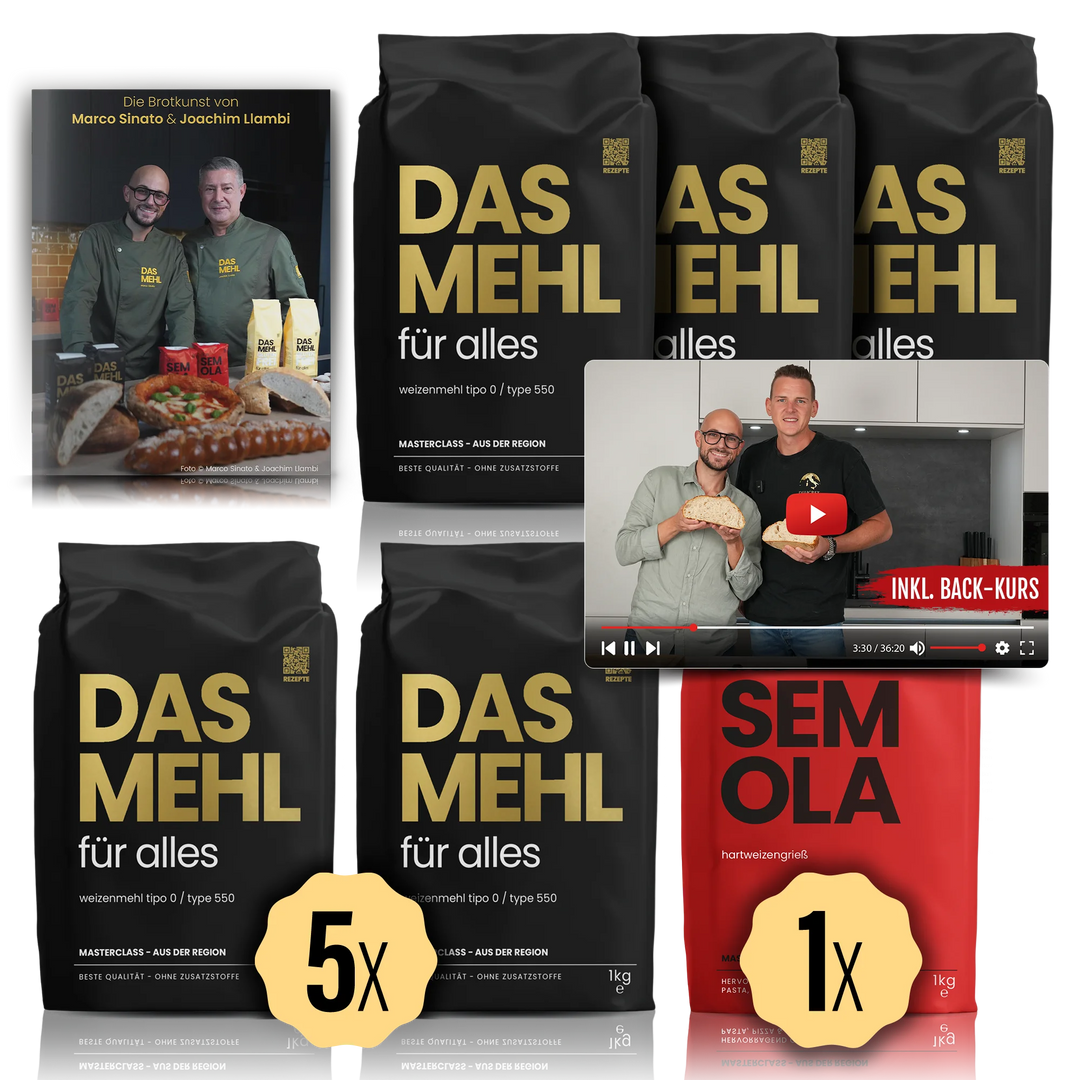 DAS MEHL | 5x 1kg Weizenmehl Tipo 0 / Type 550-13% Protein/Eiweiß + 1x 1kg SEMOLA