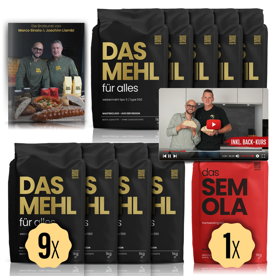 DAS MEHL | 9x 1kg Weizenmehl Tipo 0 / Type 550-13% Protein/Eiweiß + 1x 1kg SEMOLA